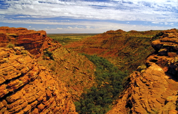 In Kings Canyon make the rocky climb with your guide to the rim of the canyon to be rewarded with marvellous views over Watarrka National Park. The climb may take up to three hours and is for those with a good level of fitness. Alternatively explore the boulder-strewn creek bed - an easier shady walk following the trail between the two sheer walls of the canyon.